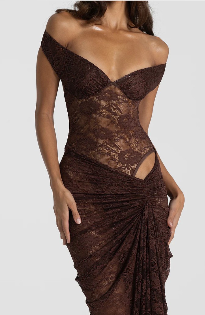Where classic lace exists alongside contemporary design. The Aubrey Dress features two pieces to form the silhouette of one dress.