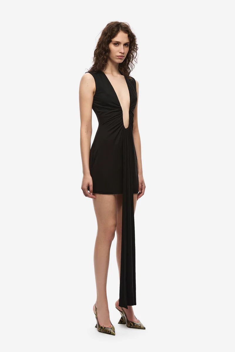 The Jennifer Cupro Mini Dress in Black, a shorter take on our new signature Jennifer Cupro Maxi Dress.