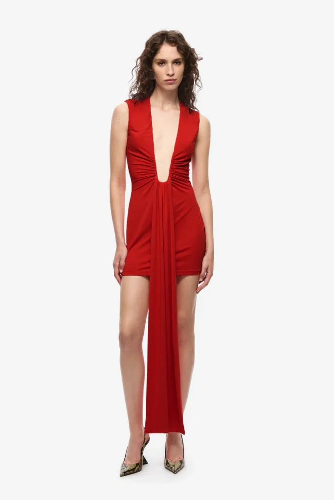 The Jennifer Cupro Mini Dress in Red, a shorter take on our new signature Jennifer Cupro Maxi Dress.