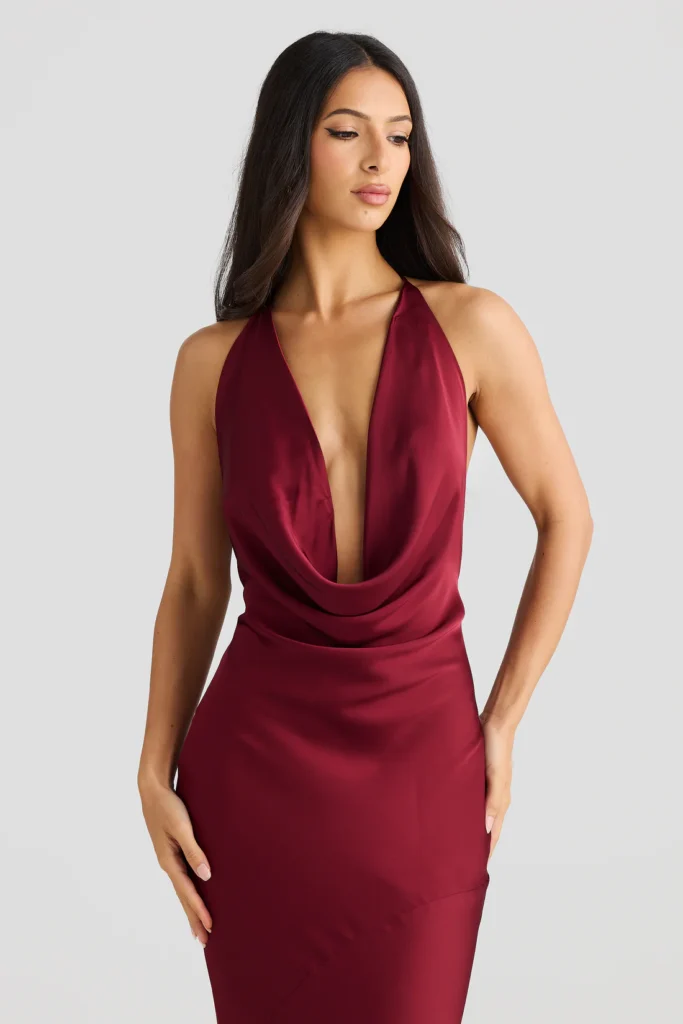 Josefina is a timeless staple. She’s features a timeless cowl neckline, soft drape back detailing and a detachable flower. She makes the perfect silhouette for your next special event.