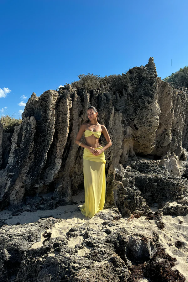 Introducing the Gigi Bandeau, the perfect blend of aesthetics and functionality. The delicate halter tie features beaded details and can be easily removed, allowing you to customise your look effortlessly. Designed to be paired with our Gigi skirt.